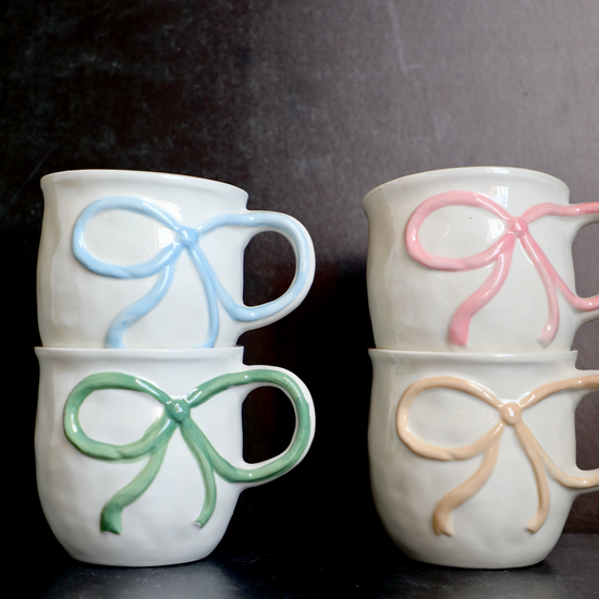 18 oz. Stoneware Mug with Bow Handle, 4 Colors