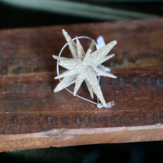 2" 9 Point Champagne Glitter Star Ornament