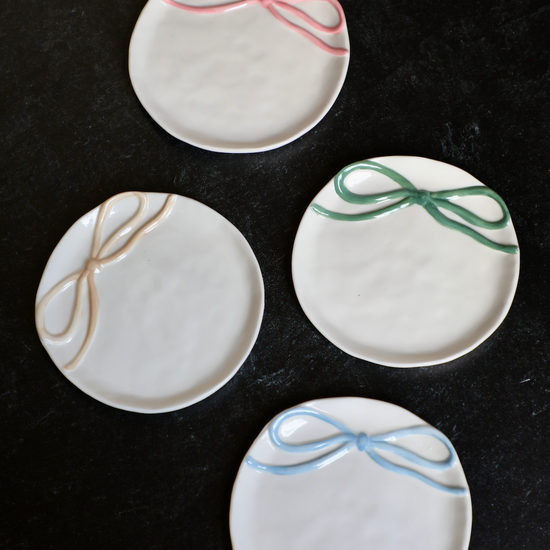4-1/4" Round Stoneware Dish with Bow, 4 Colors