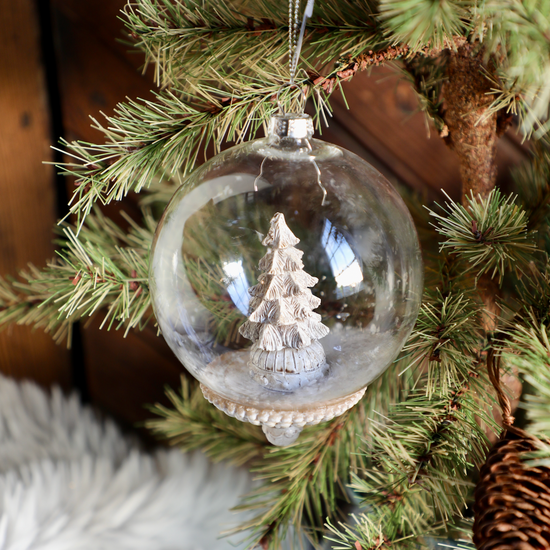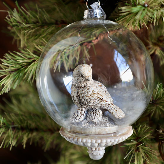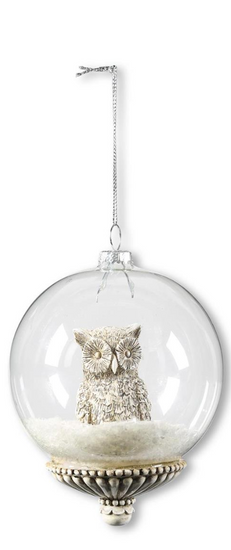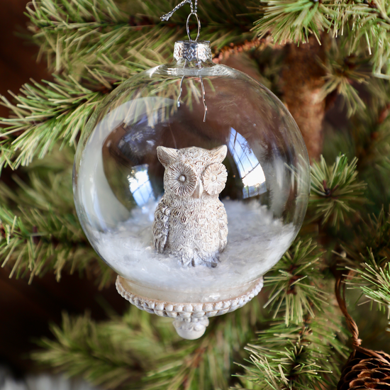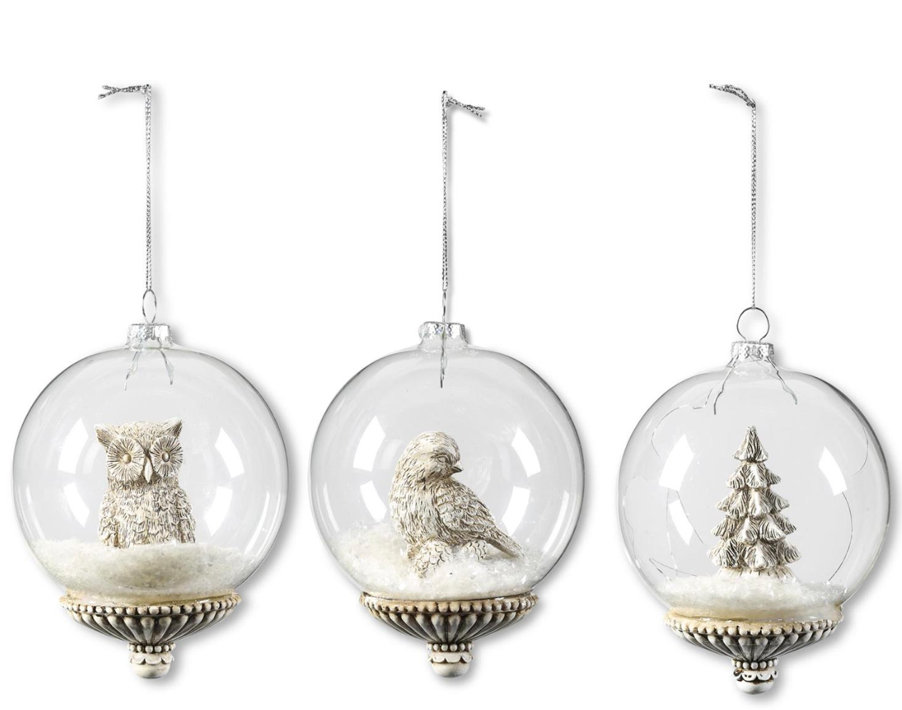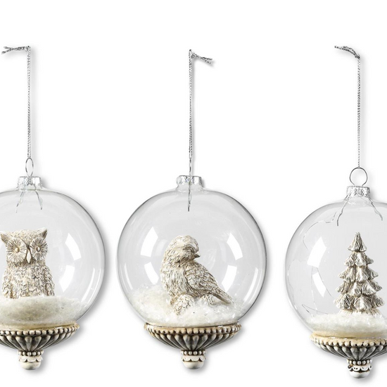 4.5" Round Glass Ornaments w/ Resin Woodland Animals