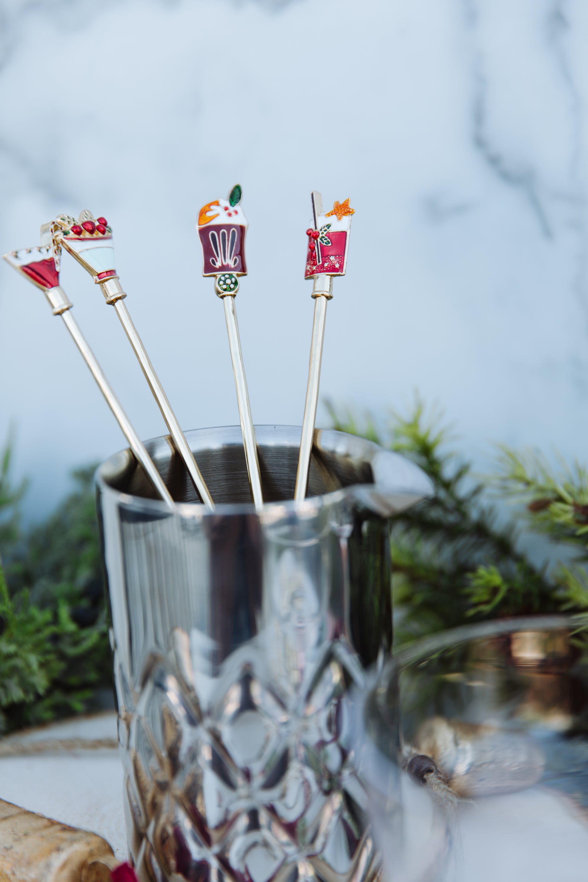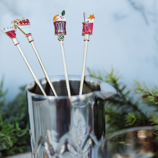 9"L Zinc Alloy Cocktail Spoon w/ Enameled Beverage