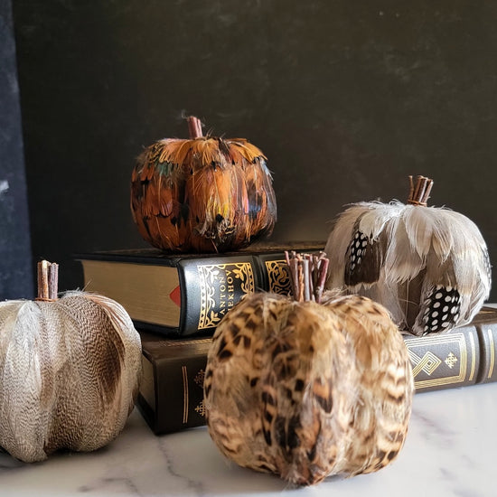 Assorted 3.25" feathered gourds in light brown, grey & white - the ideal neutral autumnal decorations!