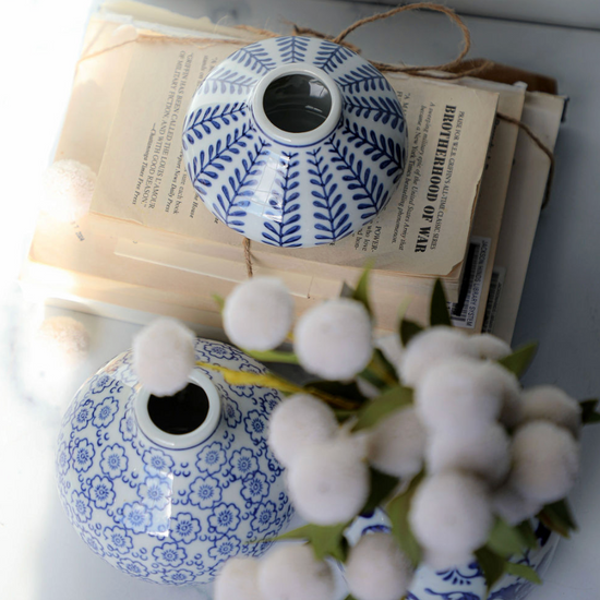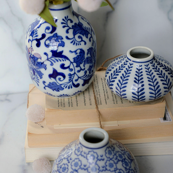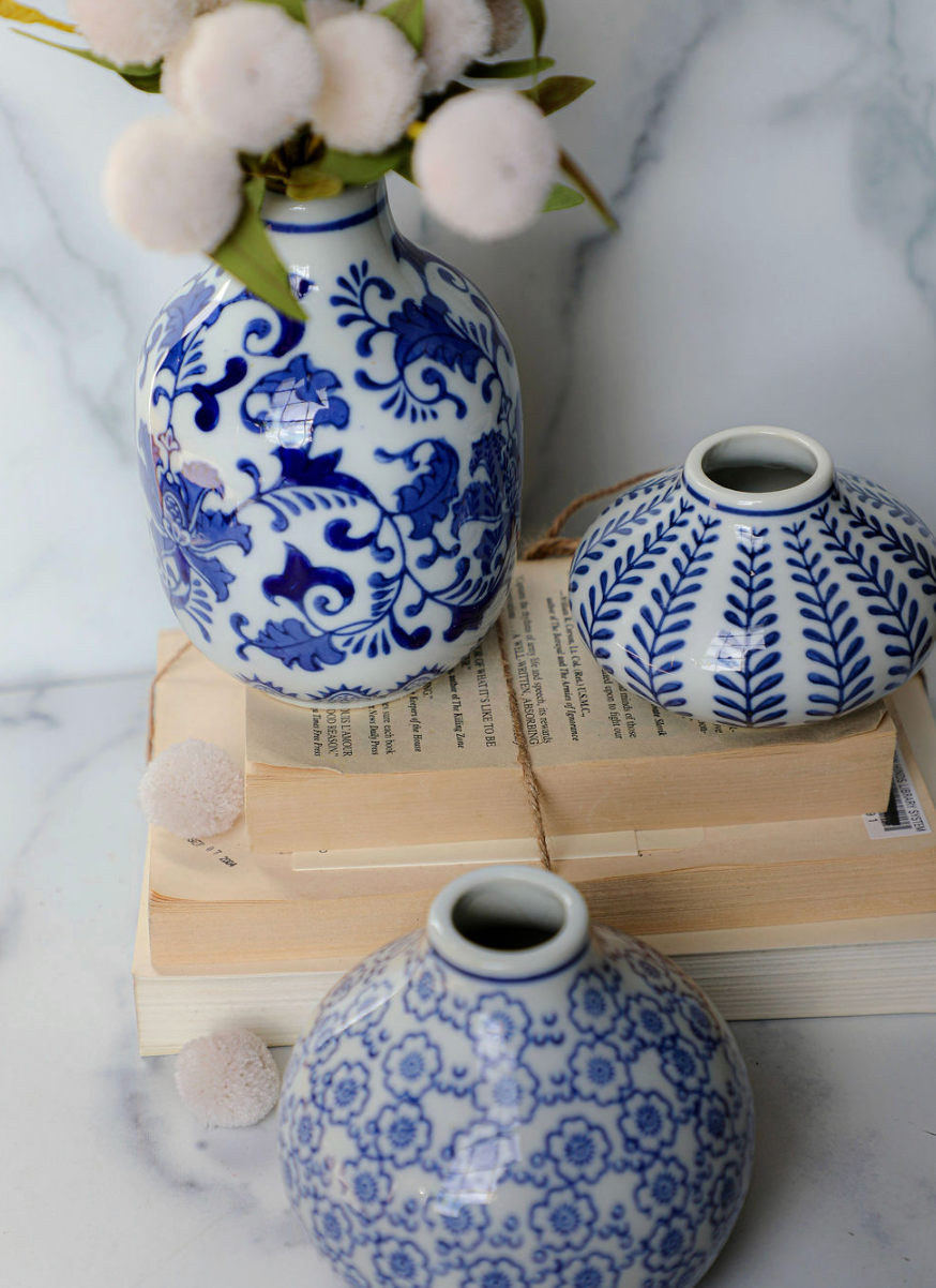 Blue & White Hand-Stamped Vase - 3 Sizes
