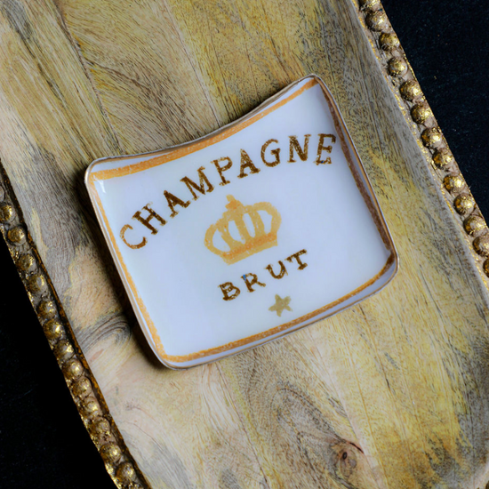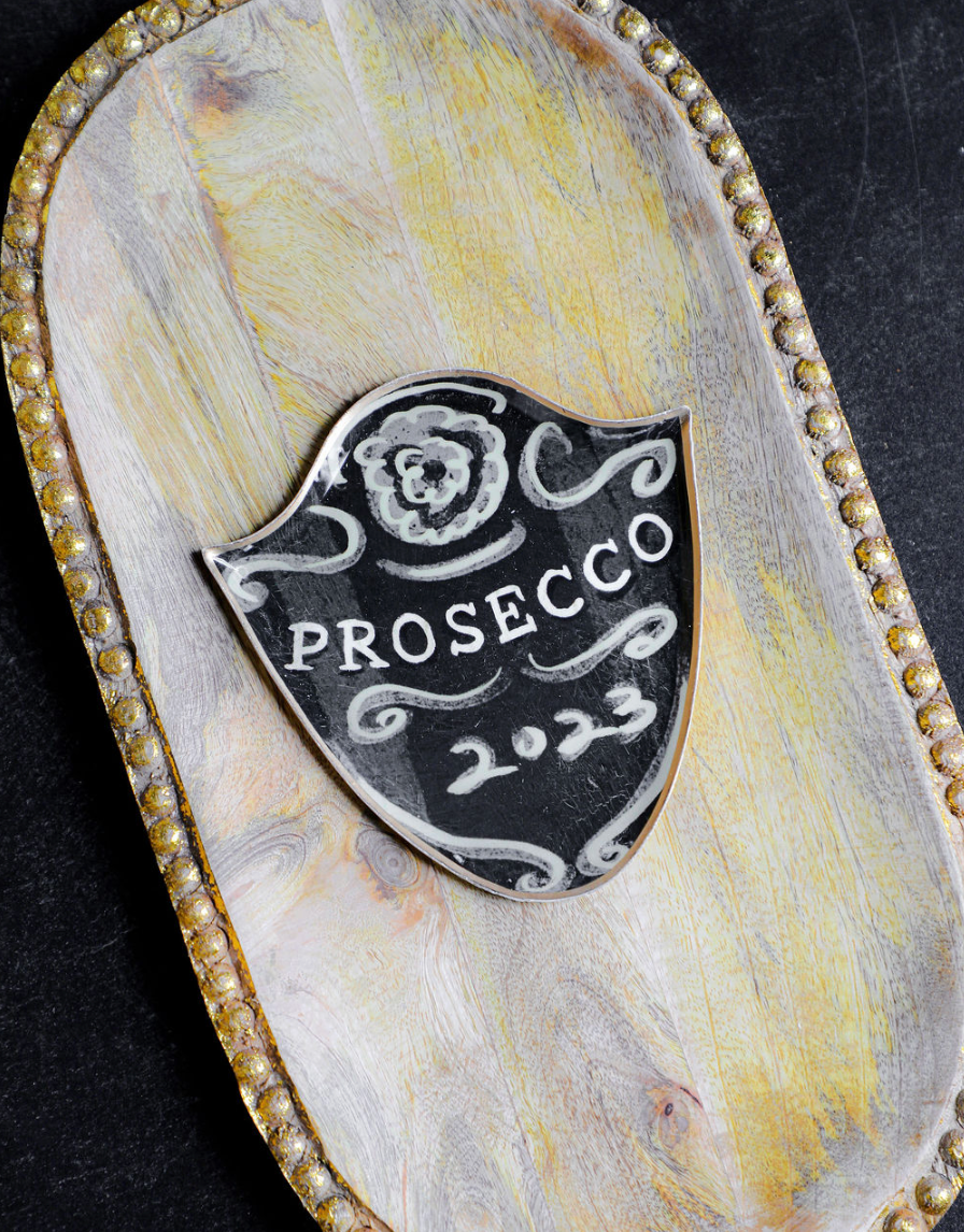 6"L x 5-3/4"W Enameled Metal Tray w/ Gold Edge "Prosecco"/"Champagne", 3 Styles ©