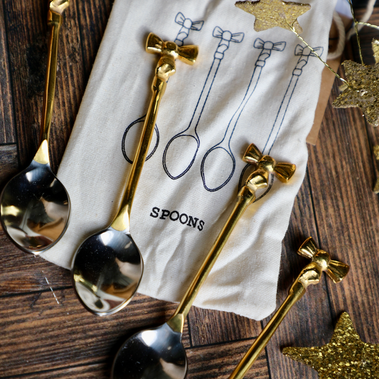 Coffee Spoons with Gold Finish Bow Handles, Set of 4