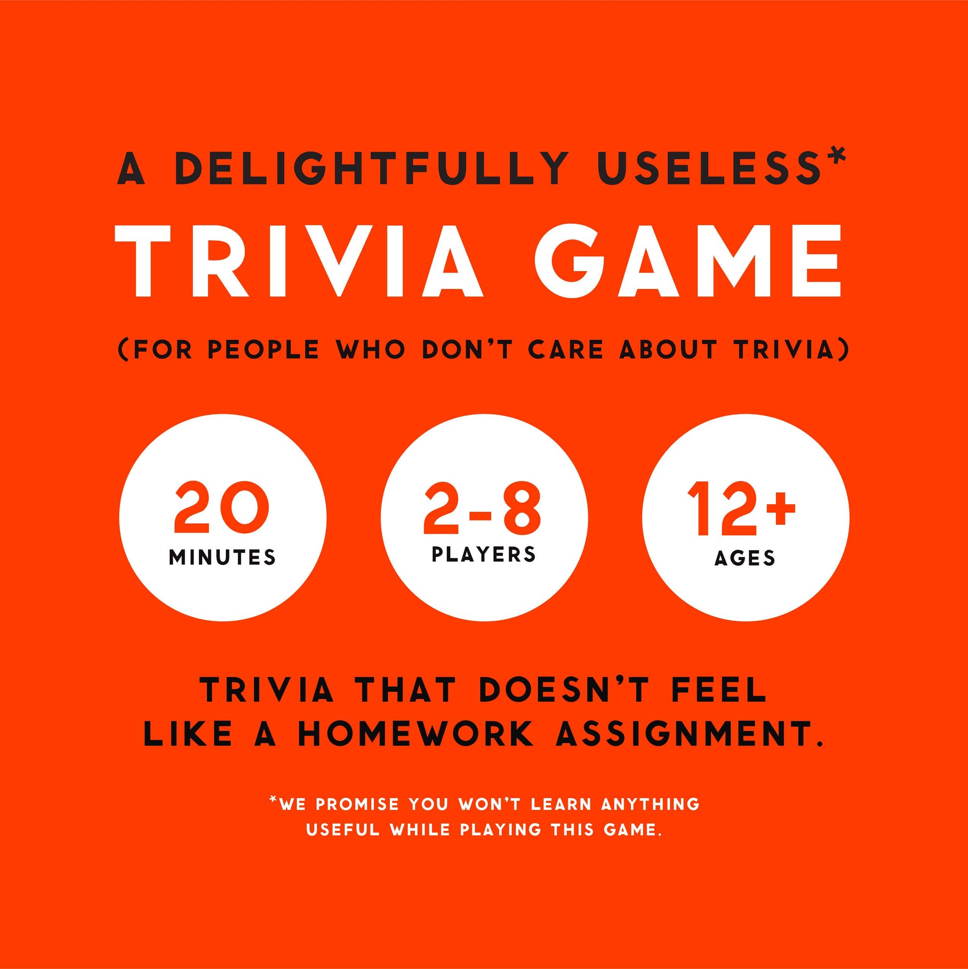 Includes 200 unique trivia questions to test your random knowledge (to say the least).