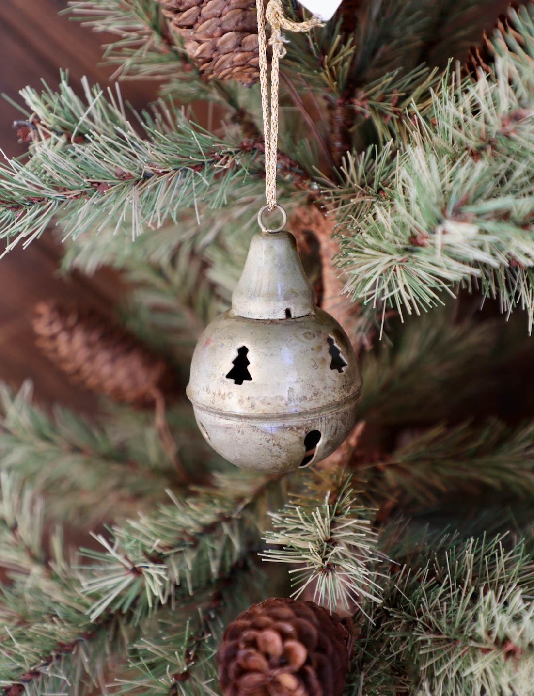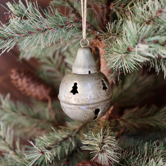 Distressed Metal Bell Ornament w/ Tree Cut Outs