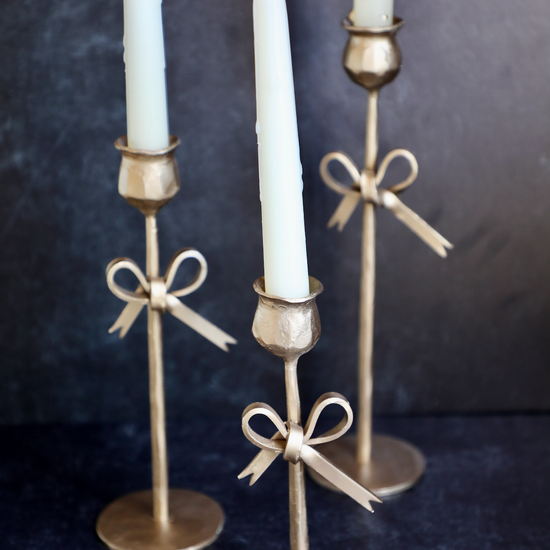 Set of 3 Hand-Forged Iron Taper Holders w/ Bow