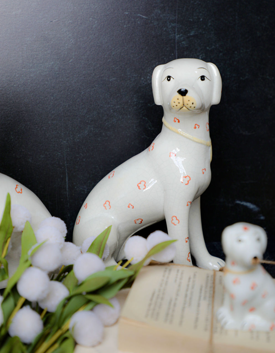 7-1/4"L x 4-1/4"W x 10-1/4"H Hand-Painted Ceramic Dog, Crackle Glaze, Cream & Rust Color, 2 Styles (Each One Will Vary) ©