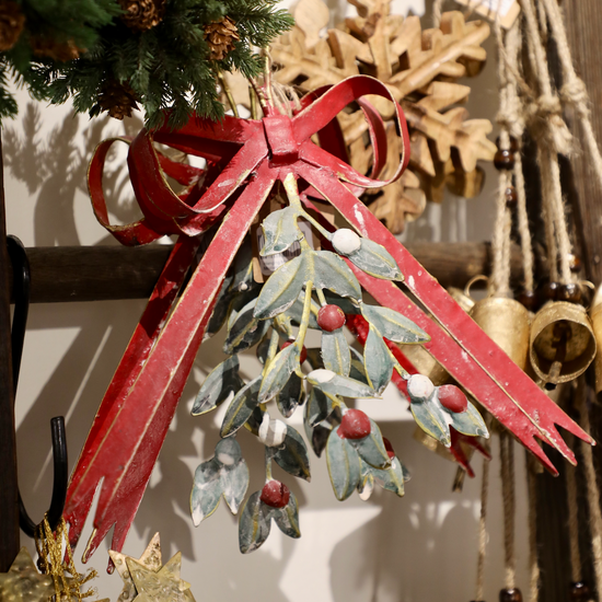 Hanging Metal Bow & Mistletoe Wall Decor
