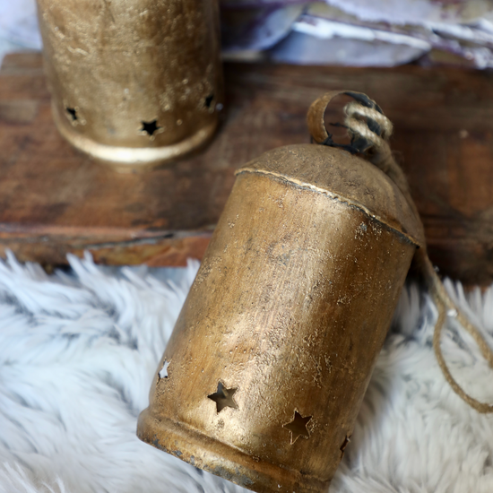 Add a festive jingle and rustic farmhouse style to your holiday decor with this Metal Bell on Jute Rope with Star Cutouts! Choose from three sizes (smalls, mediums, and larges -- yay options!) and enjoy the jolly jingle of these charming bells. Great for indoor or outdoor use, for Christmas decor and beyond. Get ringing!