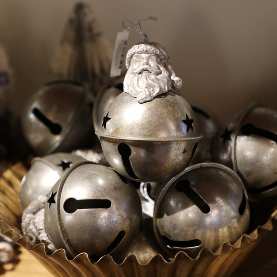 Metal Bell Ornament with Santa Head & Star Cut-Outs
