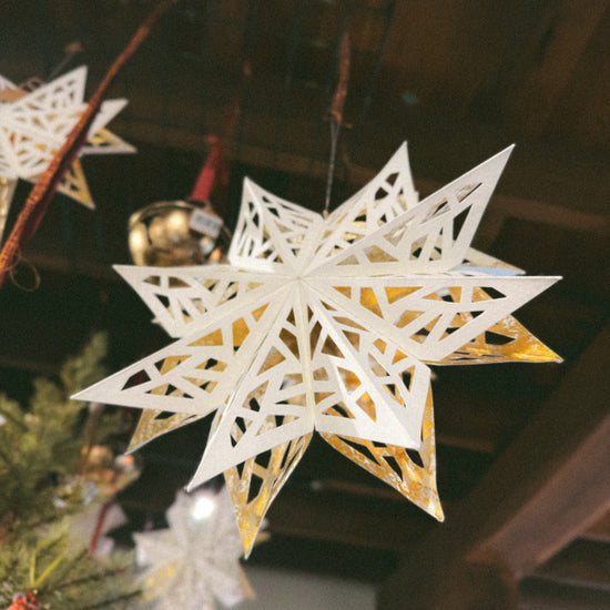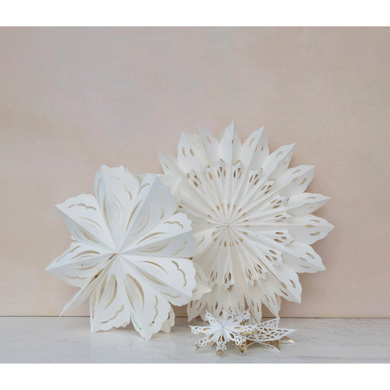 Get into the holiday spirit with this unique paper snowflake ornament! Available in two sizes, it'll give your tree classic winter vibes and give your gifts just a bit more pizzazz. Perfect for the kid at heart who loves snowflakes!