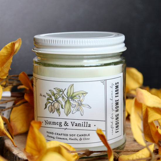 Fragrance - Nutmeg, cinnamon, vanilla and clove Starts selling for fall and moves right into holiday with a warm scent. - 100% soy wax, not a blend, that is a natural and renewable resource grown in the USA. - 100% cotton wicks. - Hand-poured in small batches, in the USA