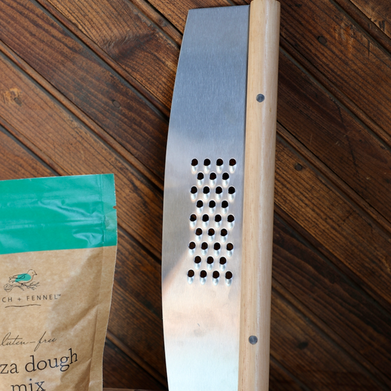 Stainless Steel & Rubberwood Pizza Cutter w/ Grater