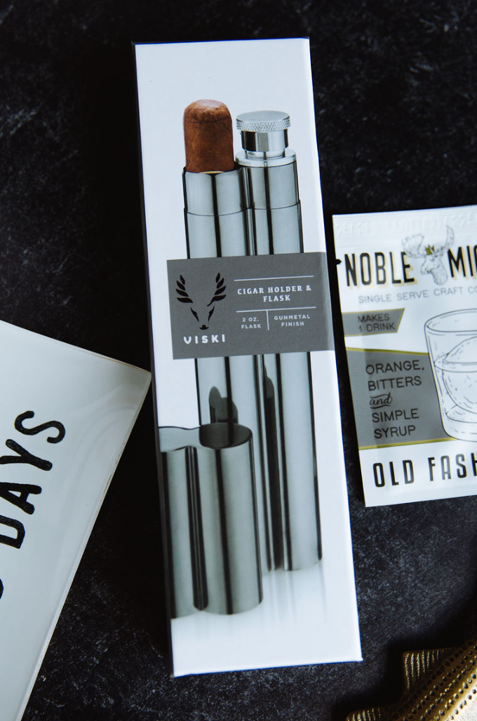 - Cigar holder and flask combo